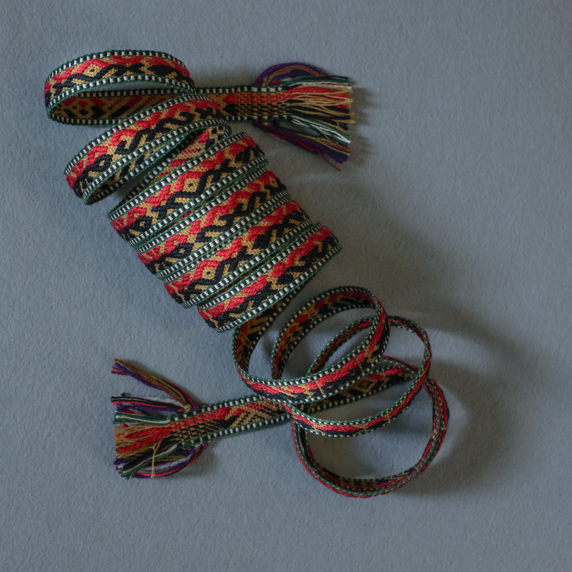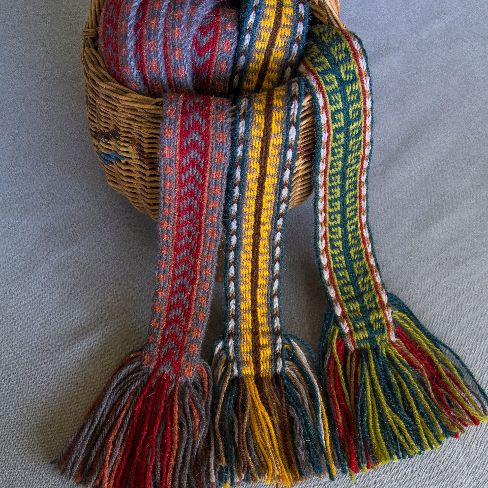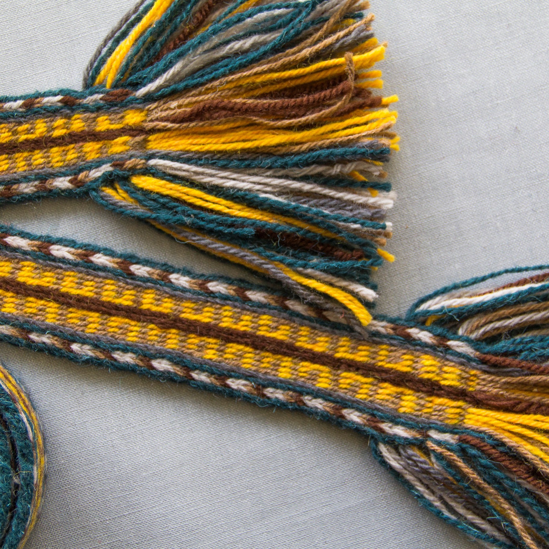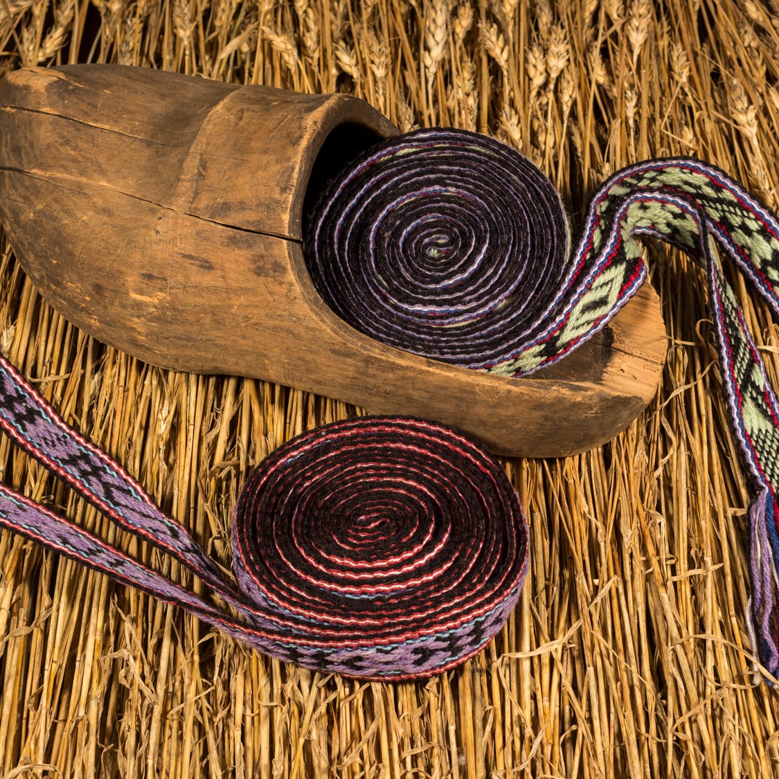 Šios juostos išaustos naudojant skietelį. | These bands were woven using a heddle.