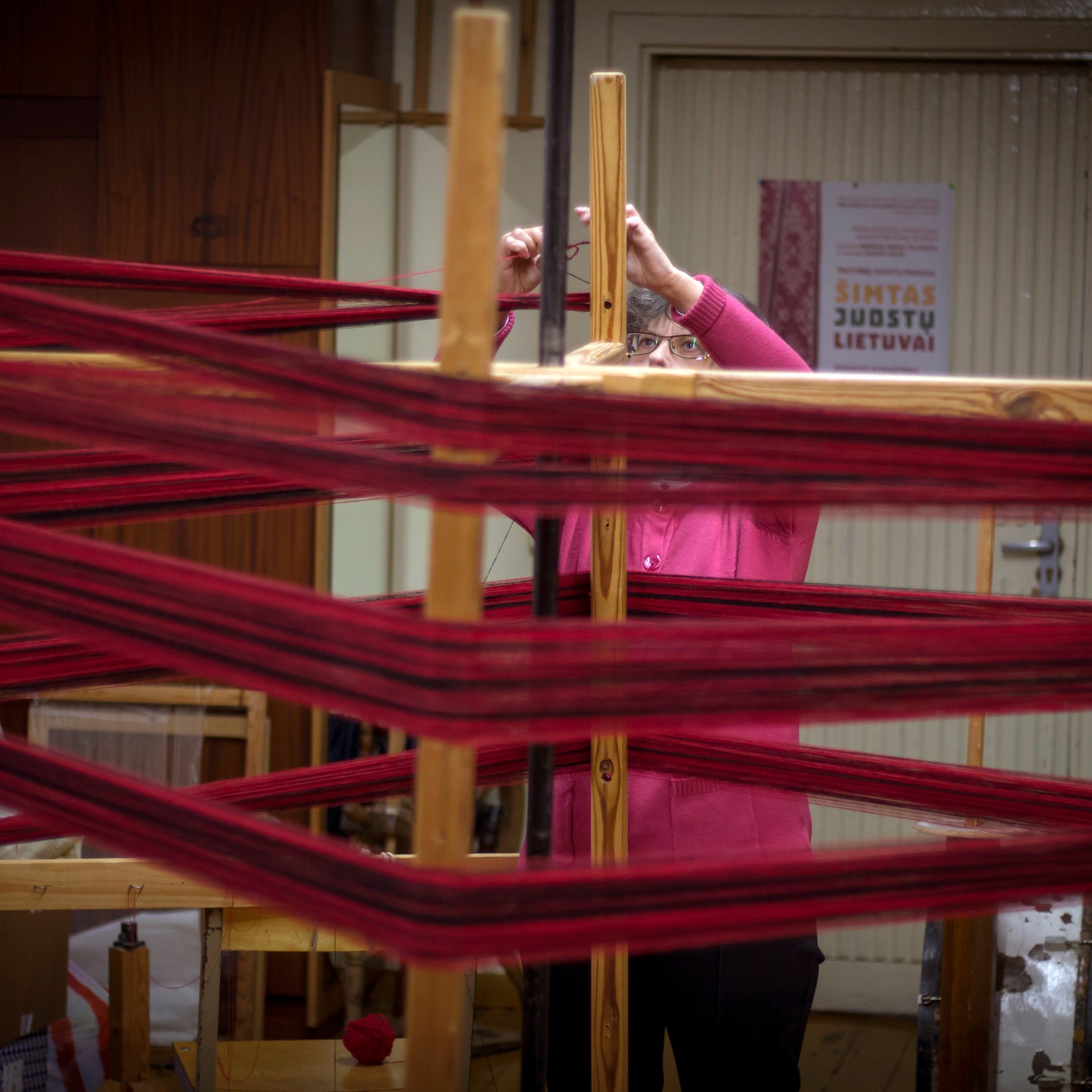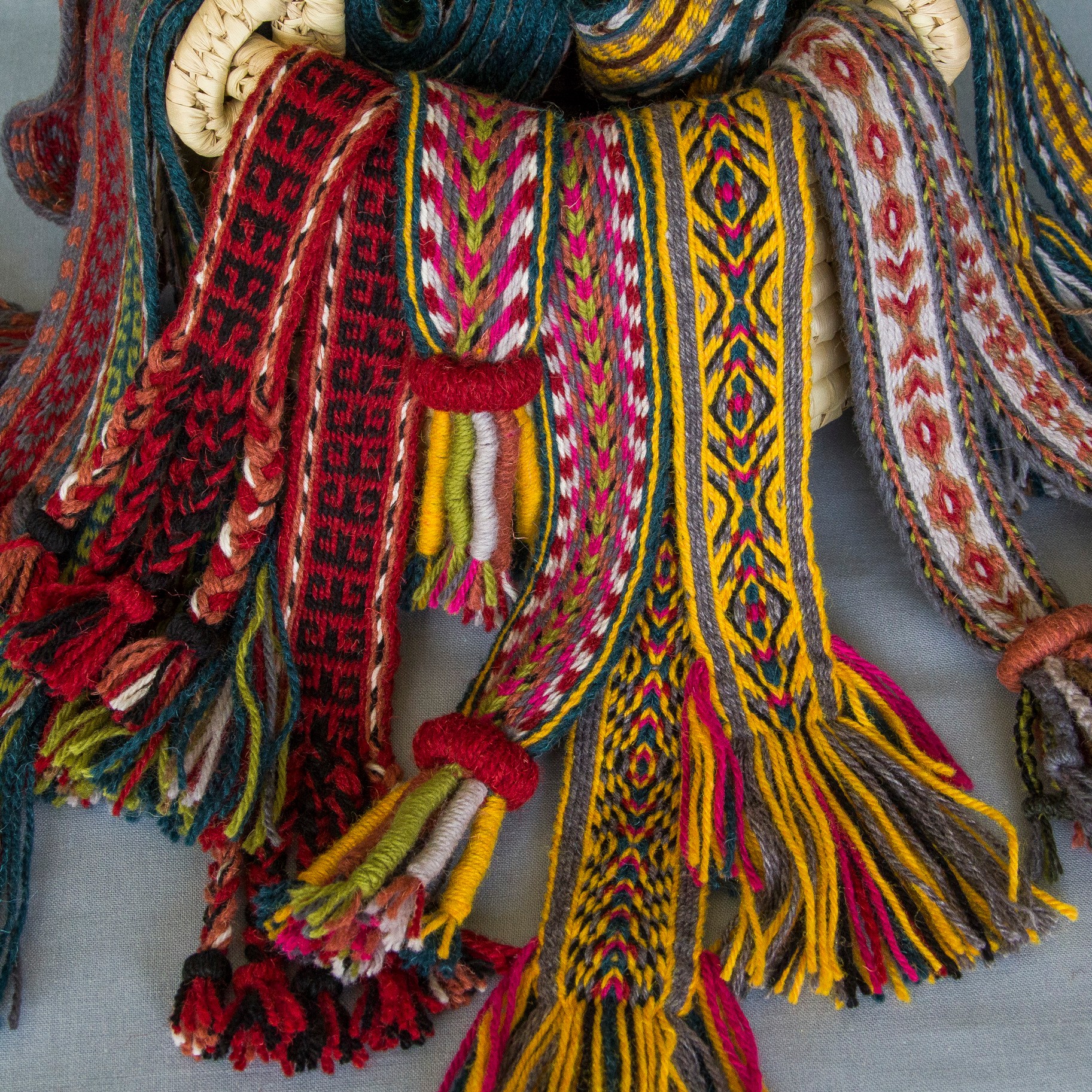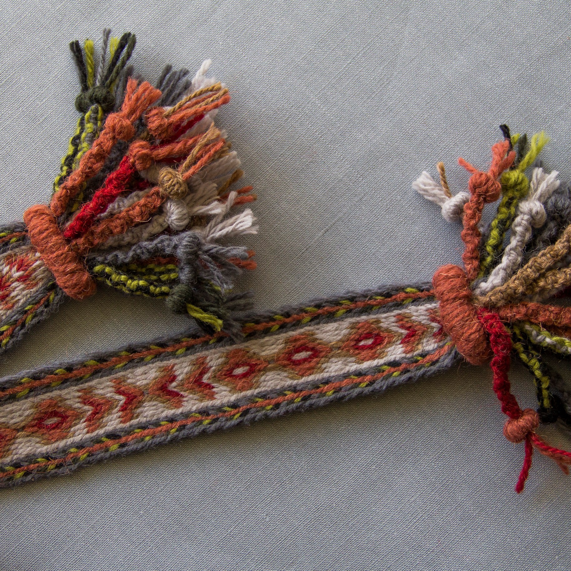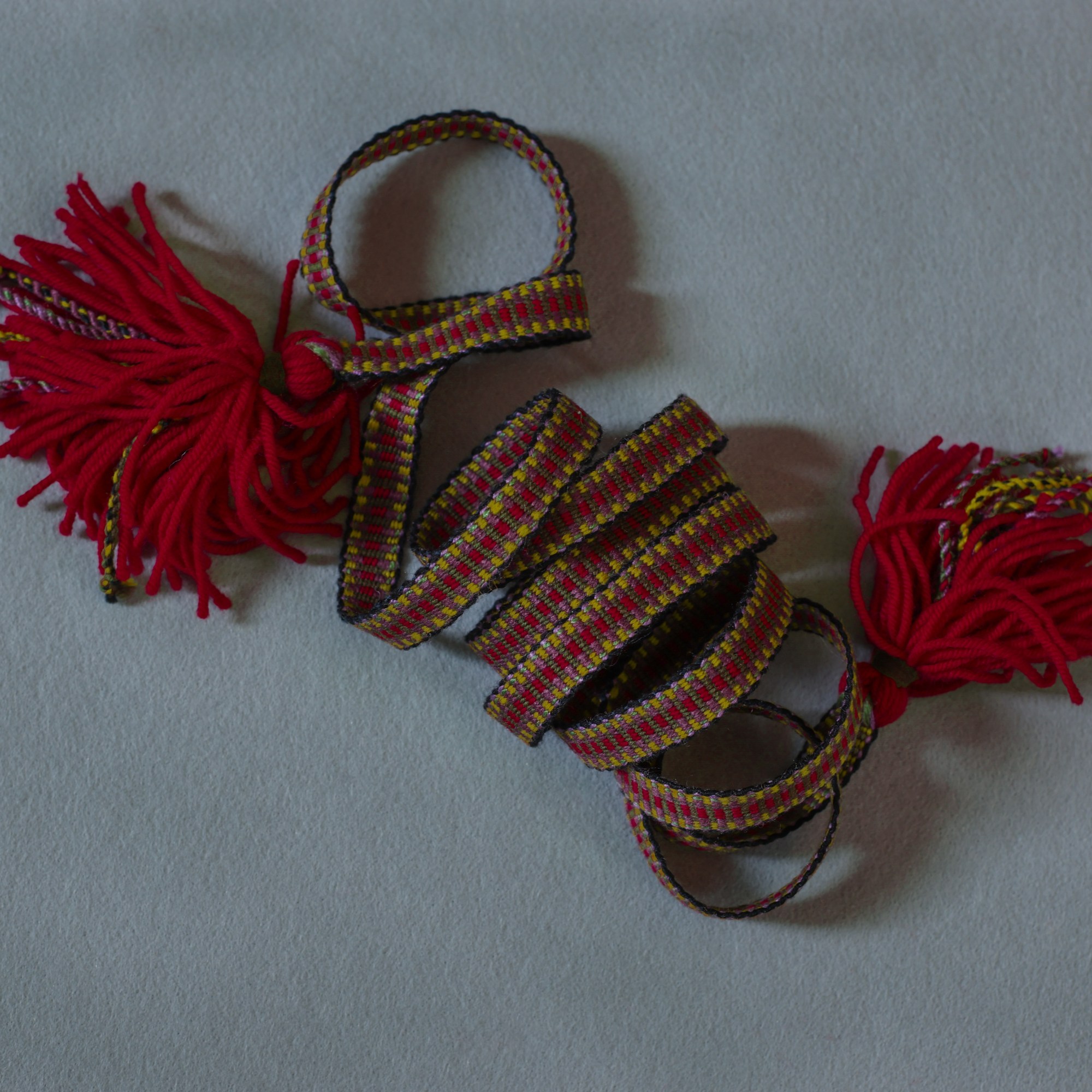 Šios juostos išaustos naudojant skietelį. | These bands were woven using a heddle.
