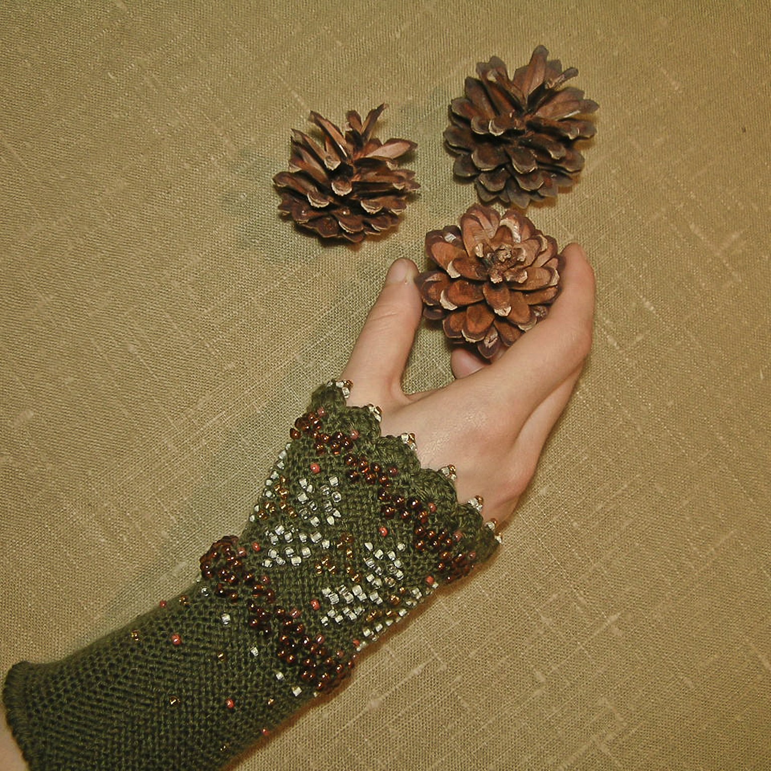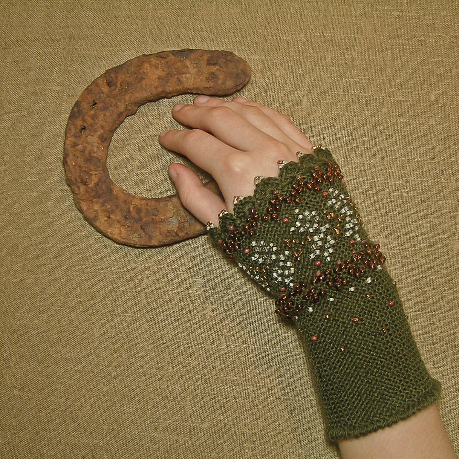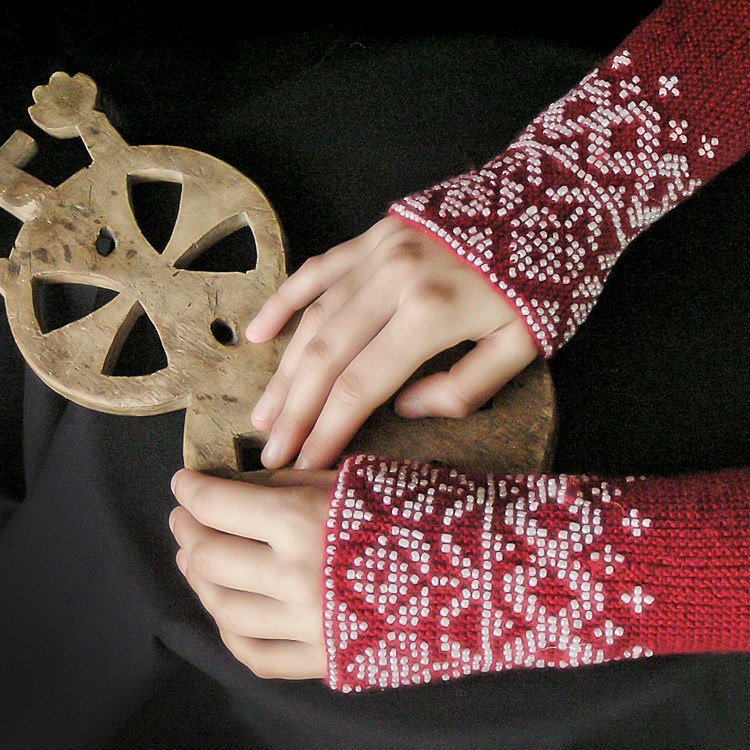 “In the late 19th – the early 20th century, in Lithuania both men and women, adults and children used to wear wrist-warmers – a knitted cuff on a wrist from 4.5 to 19 cm in length. Their function was purely practical: they were worn for warmth as well as for beauty. In the mentioned period it was a highly fashionable item of clothing. Wrist-warmers went out of fashion in the early 20th century, although later they continued to be knitted on a lesser scale.“